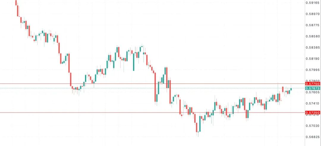 综合而言,尽管新西兰统计局发布的新西兰第三季度通胀压力升至2024年年中以来的最高水平,但当前经济环境显示,通胀虽处温和上升趋势,但整体疲弱的经济增长仍然难以改变新西兰联储维持货币宽松的政策叙事。因此,需防范纽币在基本面传导逻辑上所隐含的“弱上行,强回落”风险积累。而短线价格走势维度预计将维持0.5775-0.5725区间展开多空拉锯,纽币需在成功打破该区域格局限制后,才有望在当前多空博弈临界面中寻求新的短线突破情景。对于买方而言,尽管纽币在对0.5775区域进行有效突破确认后有望抬升至0.5800目标区域附近,但0.5775这一区域在4小时级别上仍然对其构成强阻力效应,暗示遇阻回落以及冲高回落风险尚存。与此同时,市场买方风险焦点需继续关注0.5725一线,如若该区域防线失守,则需紧惕市场空头抛售热度升温,从而导致汇价面临进一步下行测试0.5681低点区域的风险加剧。